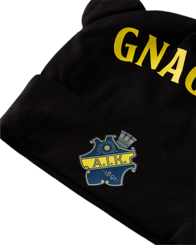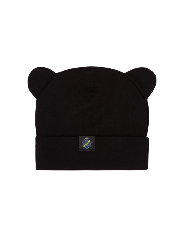 Mössa i mjuk bomull för våra minsta supportrar. Öronapplikationer och uppvikt nederkant.