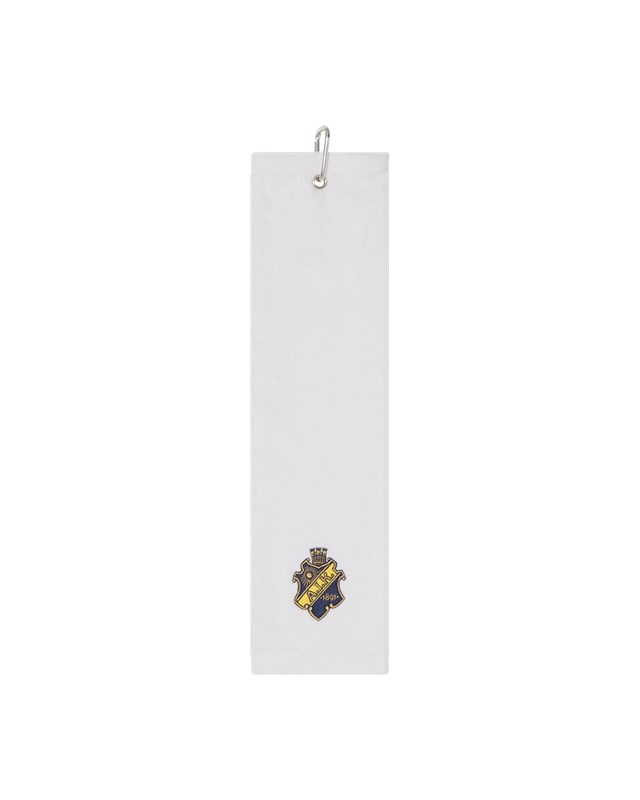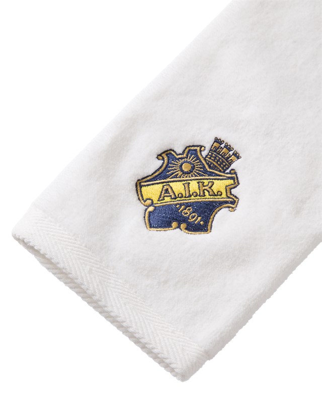 Stilren och funktionell golfhandduk i vitt med broderat AIK-emblem. Ett praktiskt tillbehör för golfaren som vill kombinera klubbkänsla med funktion. Handduken är tillverkad i absorberande material som effektivt rengör klubbor och bollar under rundan. Utrustad med smidig krok för enkel fastsättning på golfbagen.