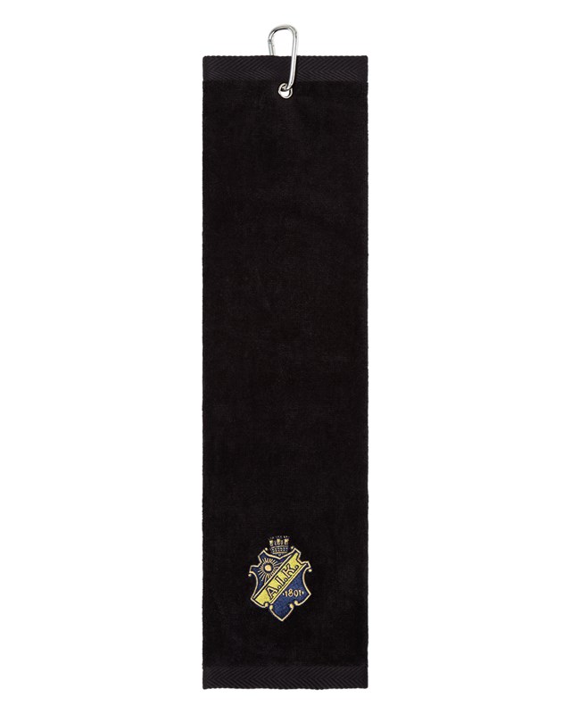 Stilren och funktionell golfhandduk i vitt med broderat AIK-emblem. Ett praktiskt tillbehör för golfaren som vill kombinera klubbkänsla med funktion. Handduken är tillverkad i absorberande material som effektivt rengör klubbor och bollar under rundan. Utrustad med smidig krok för enkel fastsättning på golfbagen.