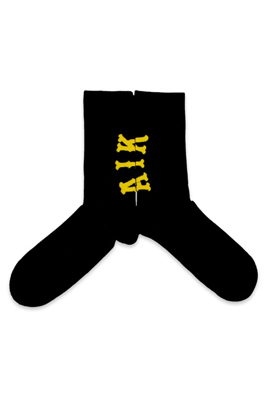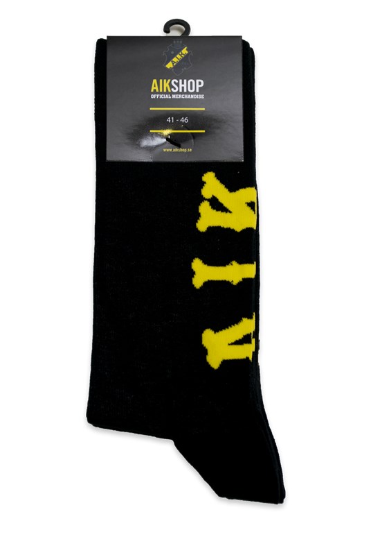 Svarta strumpor i 2 pack.Två par svarta strumpor med AIK skrivet i gult på baksidan av strumpan (vaden)