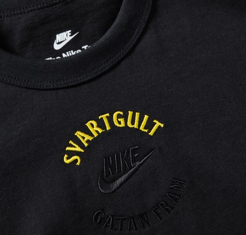 Svart t-shirt från nike med svart gult gatan fram broderat över bröstet.