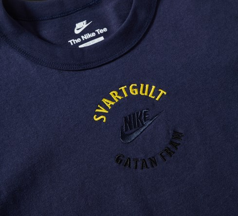 Marinblå t-shirt från nike med svart gult gatan fram broderat över bröstet.