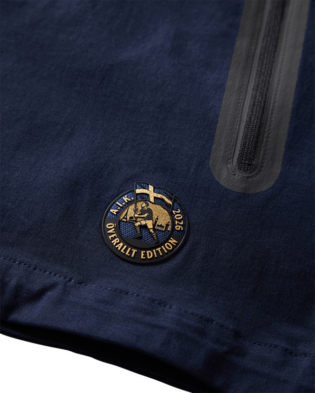 Djupt mörkblå vindjacka med huva och svarta detaljer från Nike. AIK:s första klubbmärke i formgjuten silikon på bröstet. Designen hämtar inspiration från den tidlösa Nike Tech Fleece-kollektionen. Tillverkad i ett vattenavvisande stretchmaterial som andas för att hålla dig sval när värmen ligger på. Justerbar dragsko både i huva och nedtill.