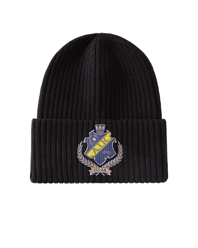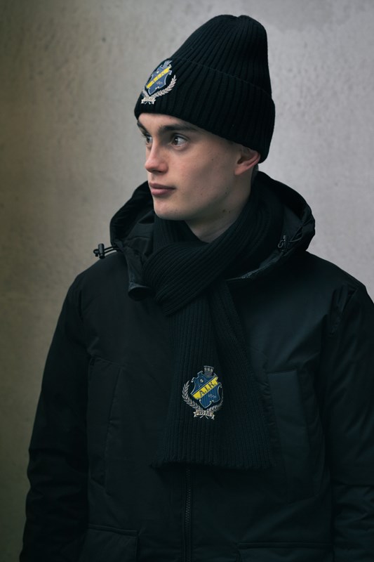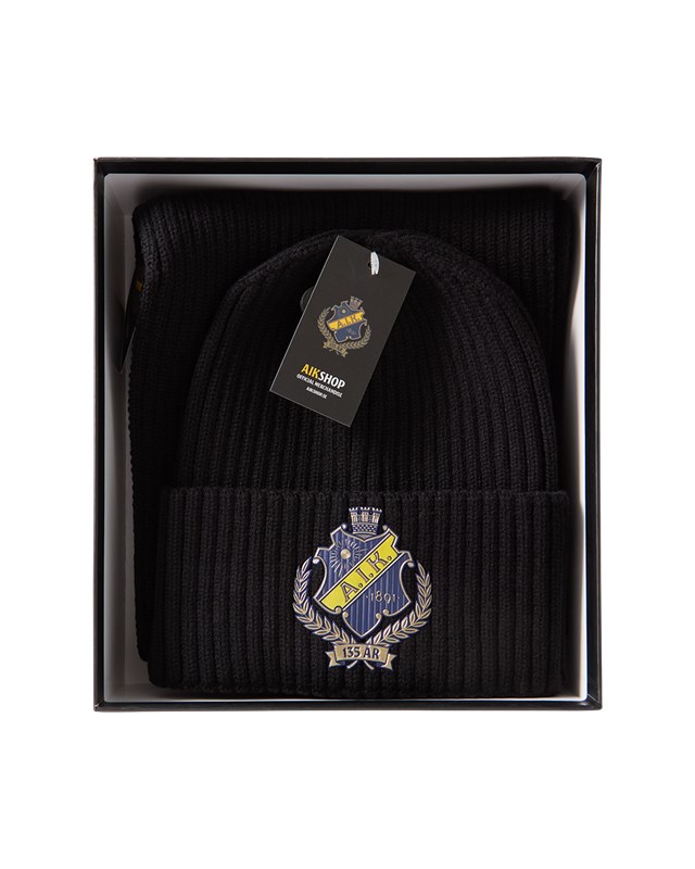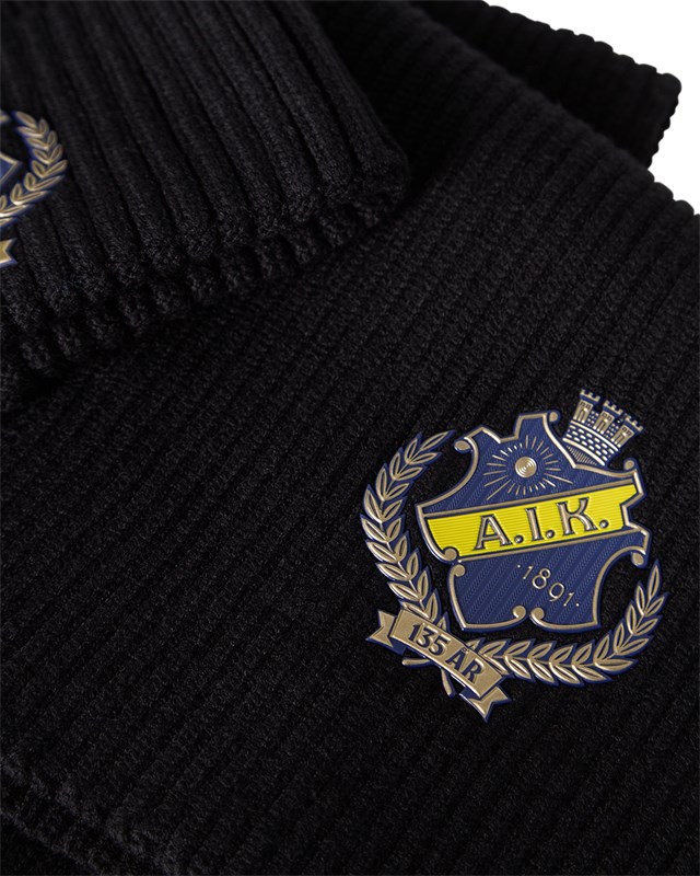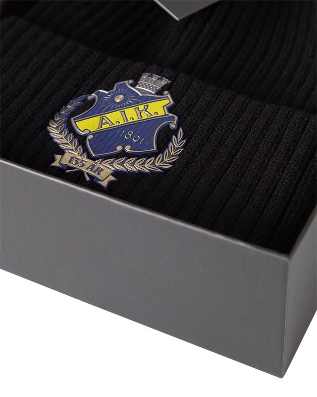 Håll värmen med stil! Denna svarta, ribbstickade mössa och halsduk är det perfekta valet för kyliga matchdagar, promenader i stan eller vardagsbruk. Med ett snyggt broderat jubileumsemblem framtill får du en klassisk och sportig look som visar ditt engagemang.